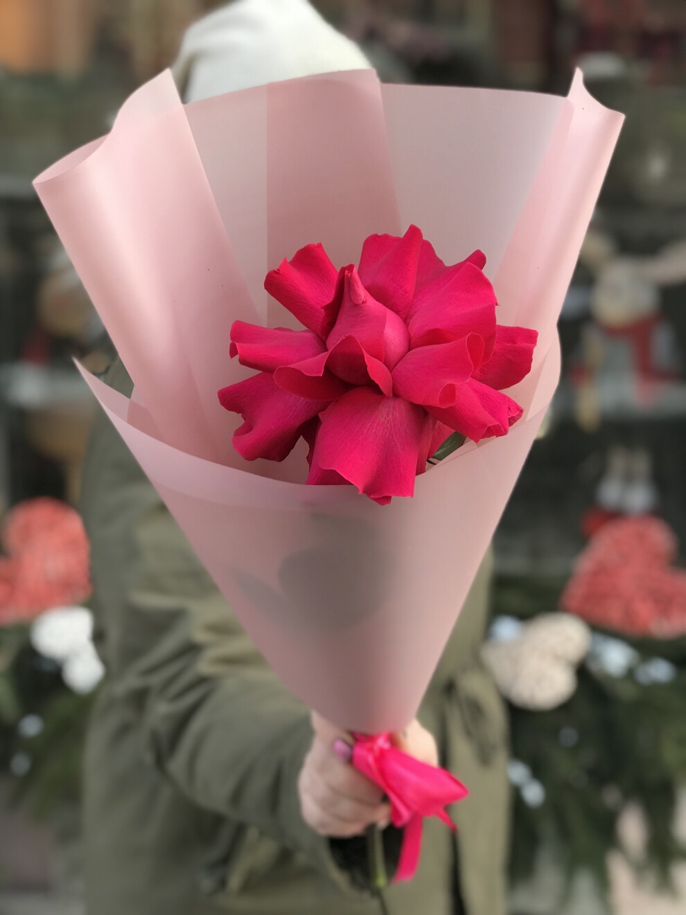 французская роза 1 шт, упаковка , лента.