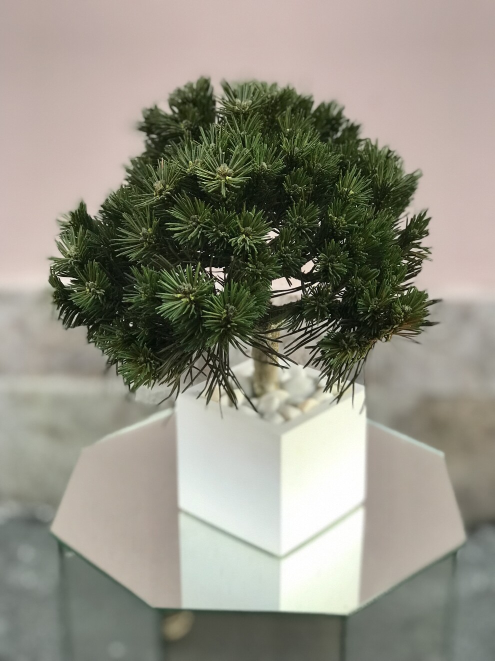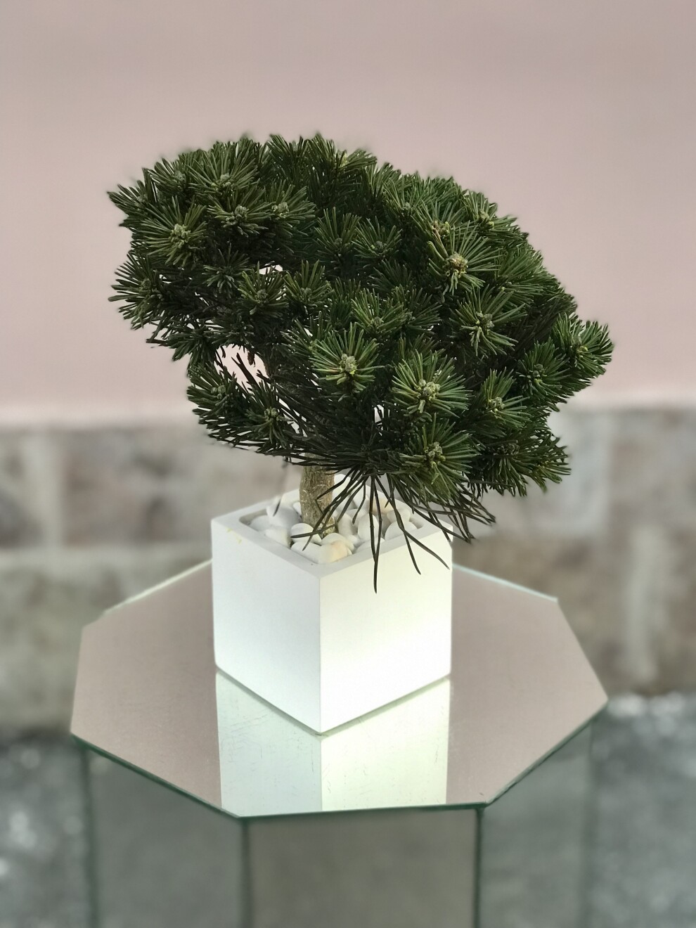 Стабилизированная сосна в керамическом кашпо, декорированное камнем. Идеальный подарок для тех, кто любит удивлять. Не требует ухода. Будет радовать получателя очень долго. 25*25 см.