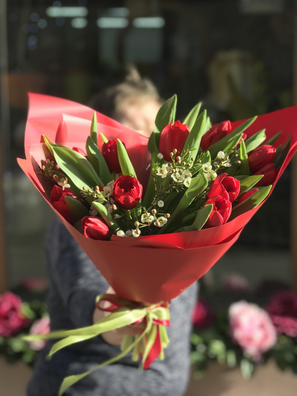 Тюльпаны красные и хамелациум